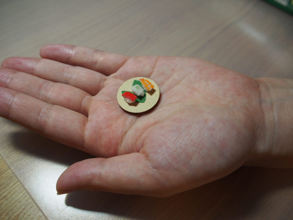 今日は家に帰ったらリビングにお寿司のミニチュア雑貨が置いていました。昨日から妻の母が家に来ていて、今日は義母と妻、息子の3人で梅田に行って作ってきたそうです。結構小さいんです。