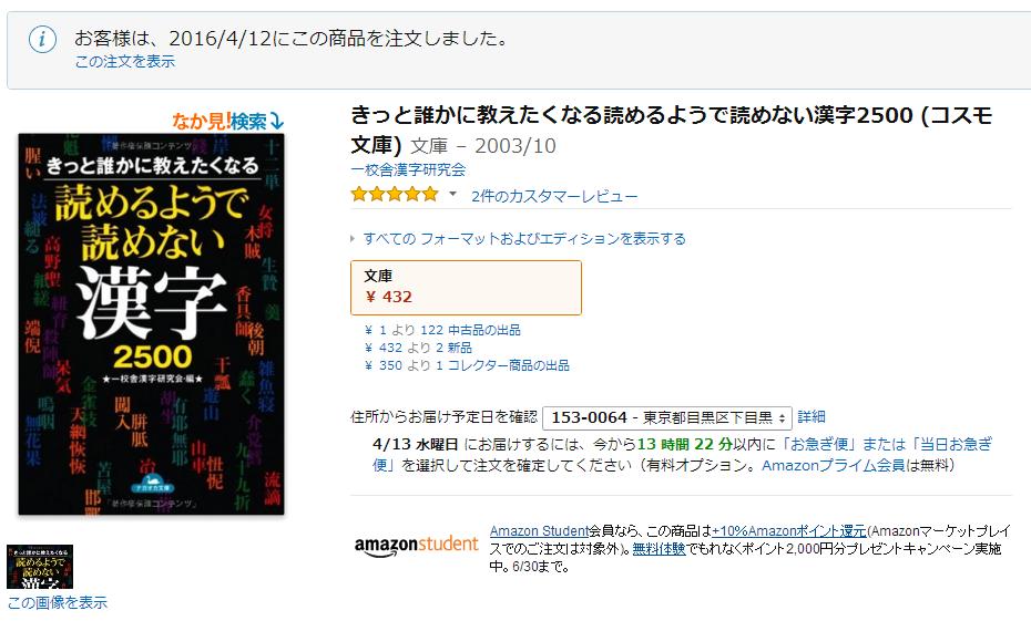 それにAmazonの本はまだ送料無料。嬉しいですよね。