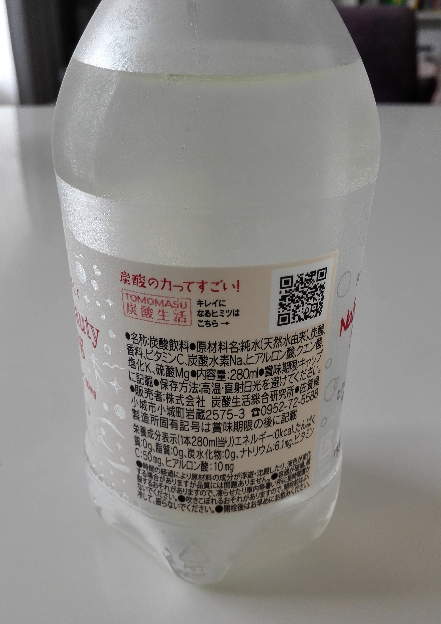 ヒアルロン酸10mg、ビタミンC50mgが入った美容系炭酸水でローズヒップの香りがするようです。