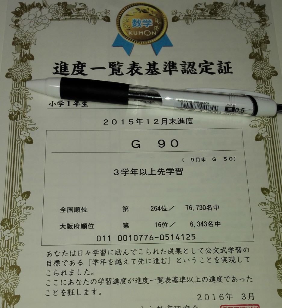 昨日家に帰ったら小学1年生の息子の公文の成績表が置いてありました。