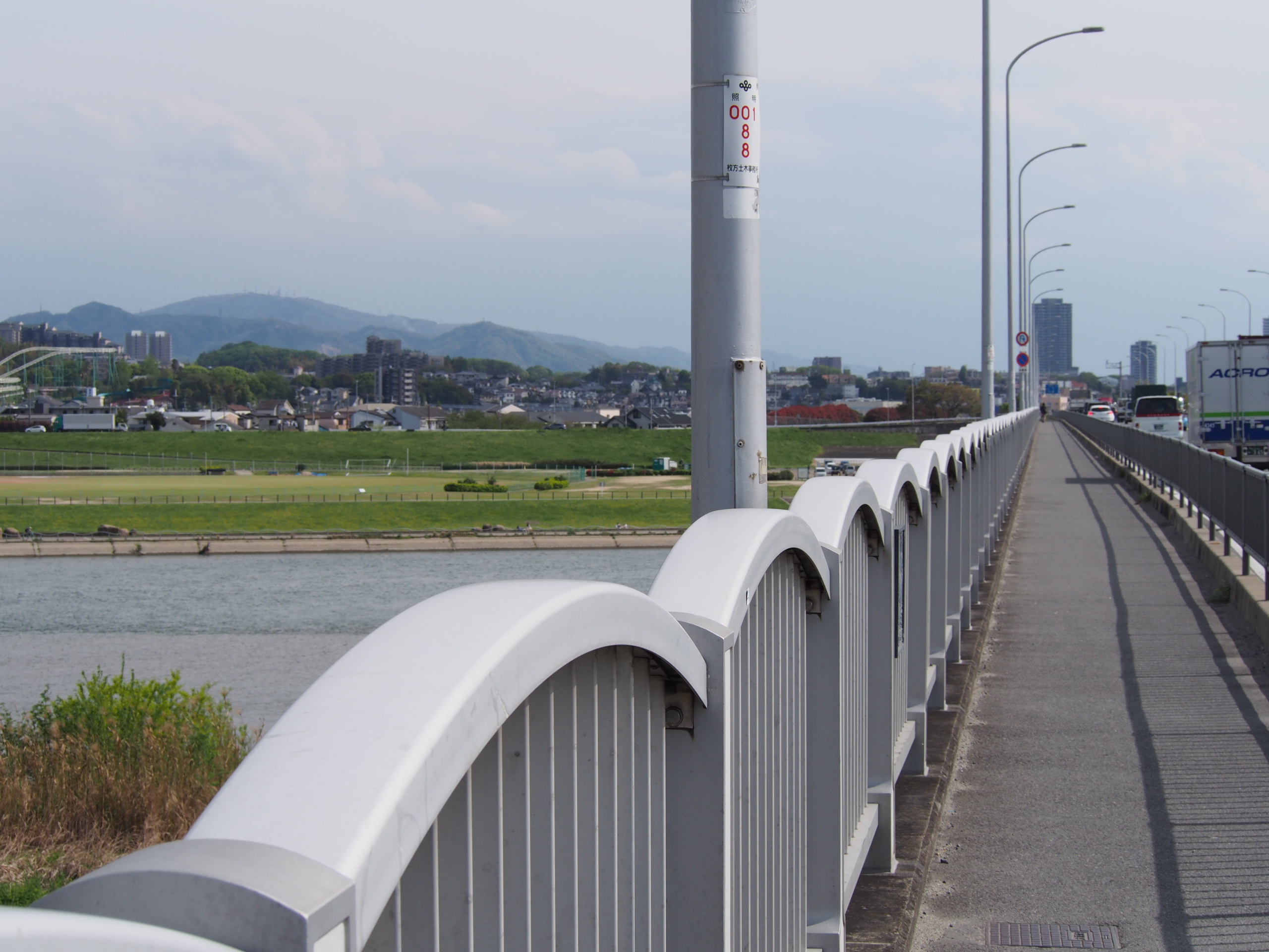 まだヒノキの花粉が残っているのが残念ですが、それでも自転車に乗ると頬にあたる風が心地良くて、気分良く枚方大橋まで着きました。