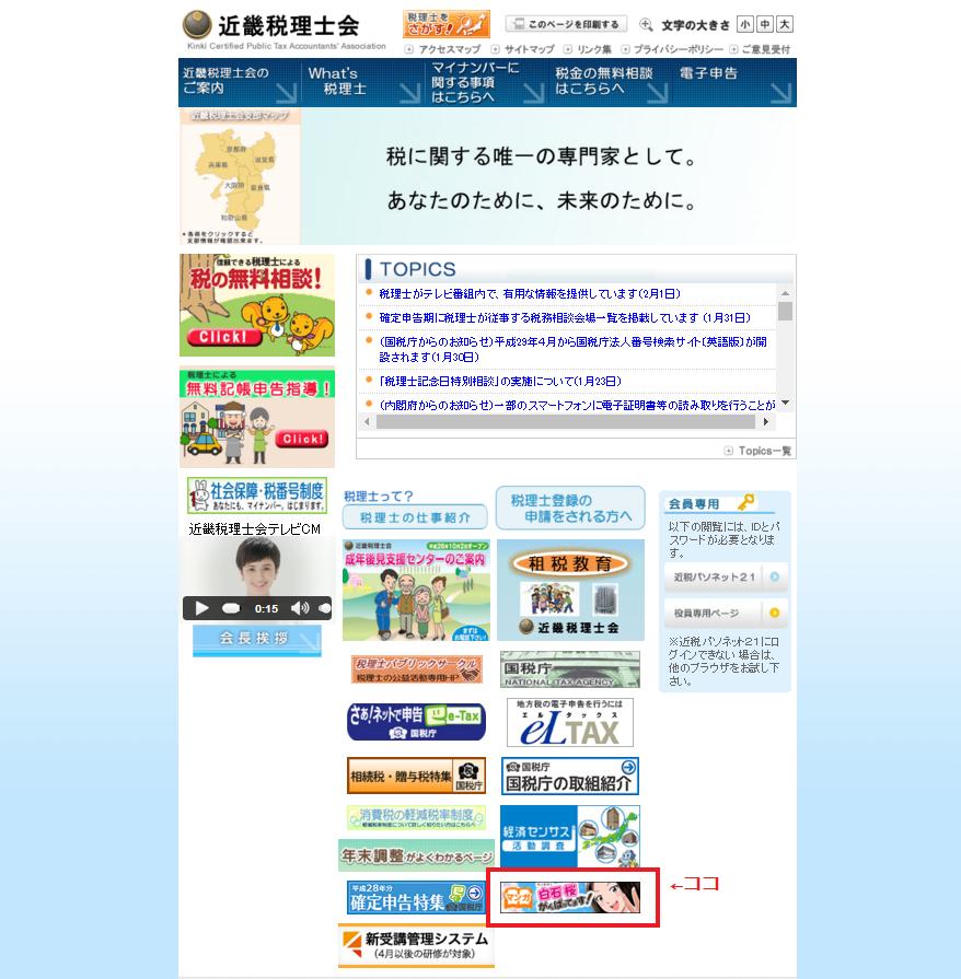 そういえば先日、近畿税理士会のホームページで調べごとがあって色々と見ていたところ、下の方に何やら気になるバナーが。