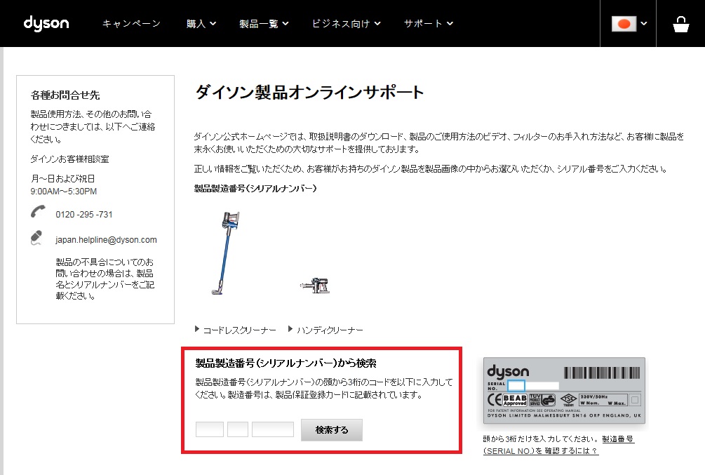 これって実際に壊れたらどうやって手続きしたらいいのかなと思ってダイソンのサイトを見てみたら発見。