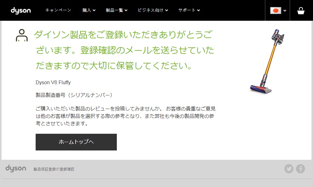 あと、箱の中にメーカー保証とオンライン登録の手続き方法が書いてあったので試しに登録してみました。