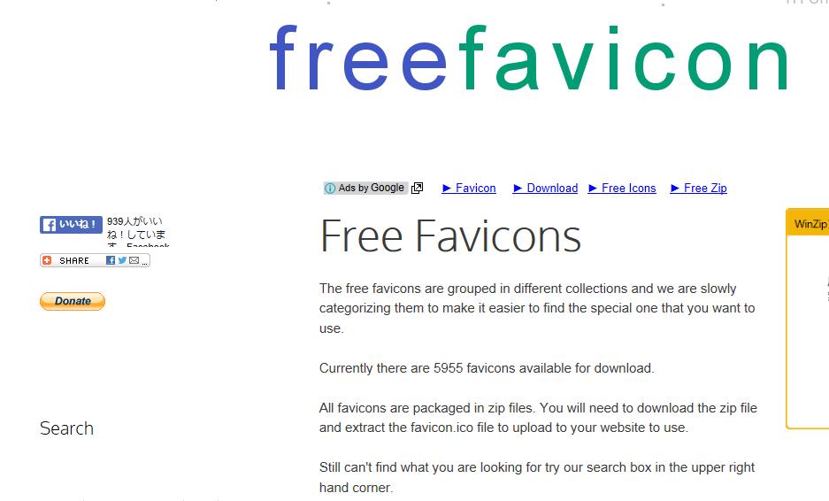 フリーのファビコンサイトはfree favicon(http://www.freefavicon.com/freefavicons/)