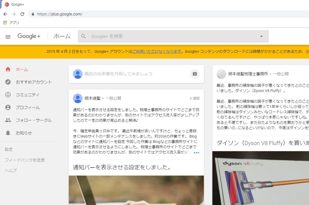 ヤフージオシティーズに続いて、Google+もサービス終了です。