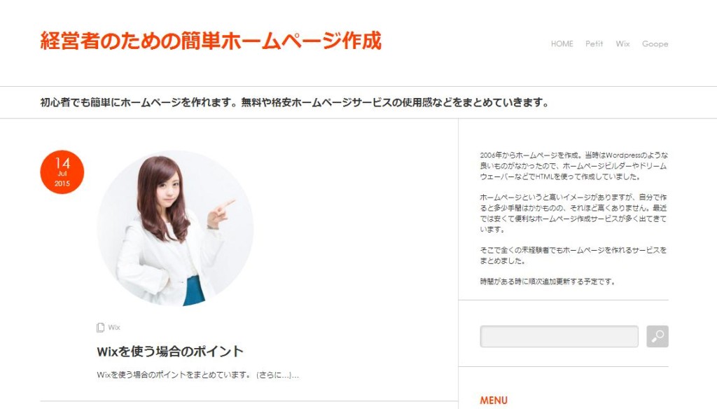 業者に依頼すると綺麗でオシャレなホームページが簡単に出来上がります。が、費用がかかります。先にも書いたように大体毎年20万円くらい必要ということもあって躊躇する経営者も多いと思います。ただ、最近では手軽にホームページを作れるサービスが結構あって、しかも破格です。
