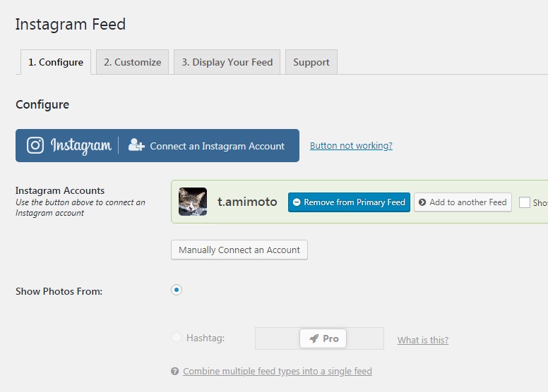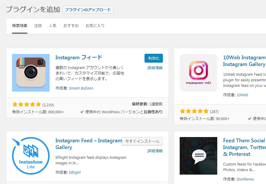 インスタの自動投稿プラグインは色々あるんですけど、とりあえずインストール数が一番多いInstagramフィードにすることにしました。