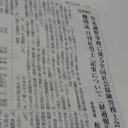日本税理士会連合会(以下、日税連)の会報誌「税理士界」の新年号の14、15面に社会保険労務士による年末調整業務に関する大きな記事がありました。 (さらに…)…